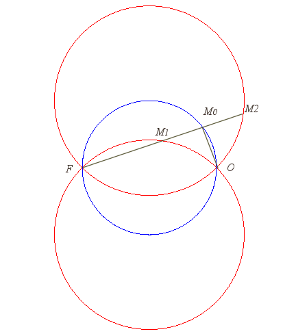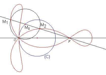 | La (courbe) strophoïdale d'une courbe Autrement dit, c'est le lieu des intersections d'un cercle centré en M0 sur la courbe La strophoïdale est donc formée de deux branches |
