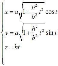 | Intersection de l'hélicoïde Paramétrisation cartésienne : |
